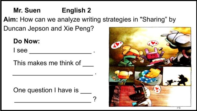 As they read "Sharing," a complex story that addresses urban alienation and consumerism, Leighton's Chinese-speaking students draw on their knowledge of Chinese culture and history, and his other students benefit from their expertise. (Drawing on students' cultural knowledge also reinforces that home cultures are both valuable and valued in school.) With daily assignments asking them to interpret images and text, all of the students learn how to leverage both visual and textual language to understand the story.