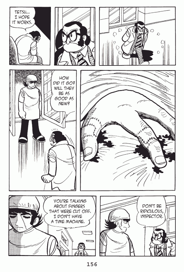 Captions: Inspector: Tetsuā¦I hope it works. Inspector: How did it go? Will they be as good as new? Black Jack: Donāt be ridiculous, Inspector. Black Jack: Youāre talking about fingers that were cut off. I donāt have a time machine.