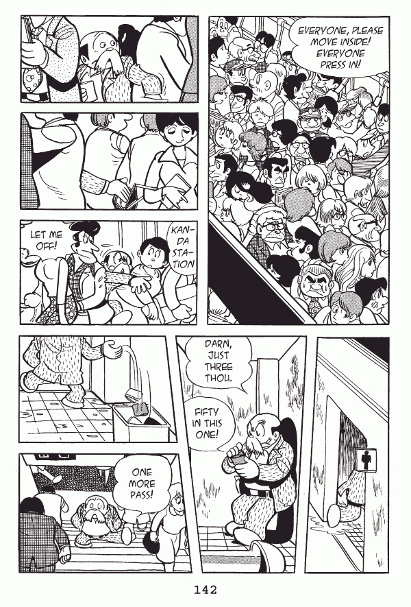 Captions: Announcer: Everyone, please move inside! Everyone press in! Announcer: Kanda Station Person: Let me off! Tetsu: Darn, just three thou⦠fifty in this one! Tetsu: One more pass!